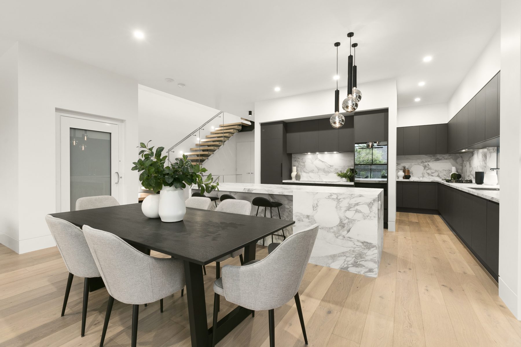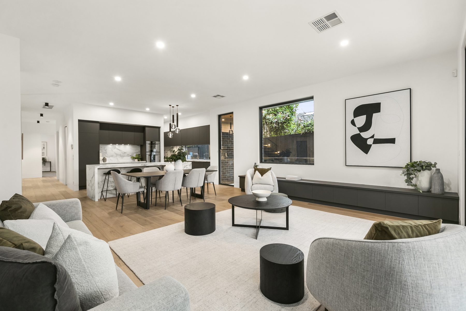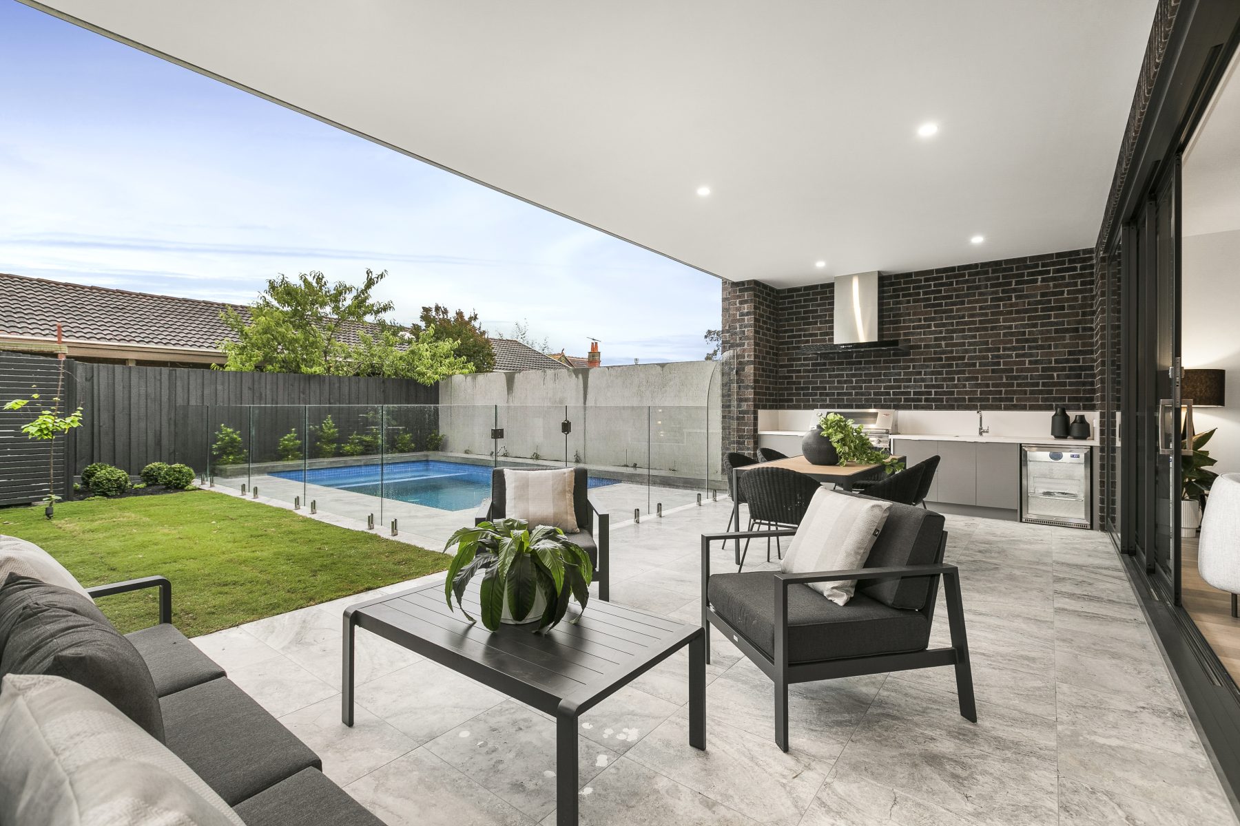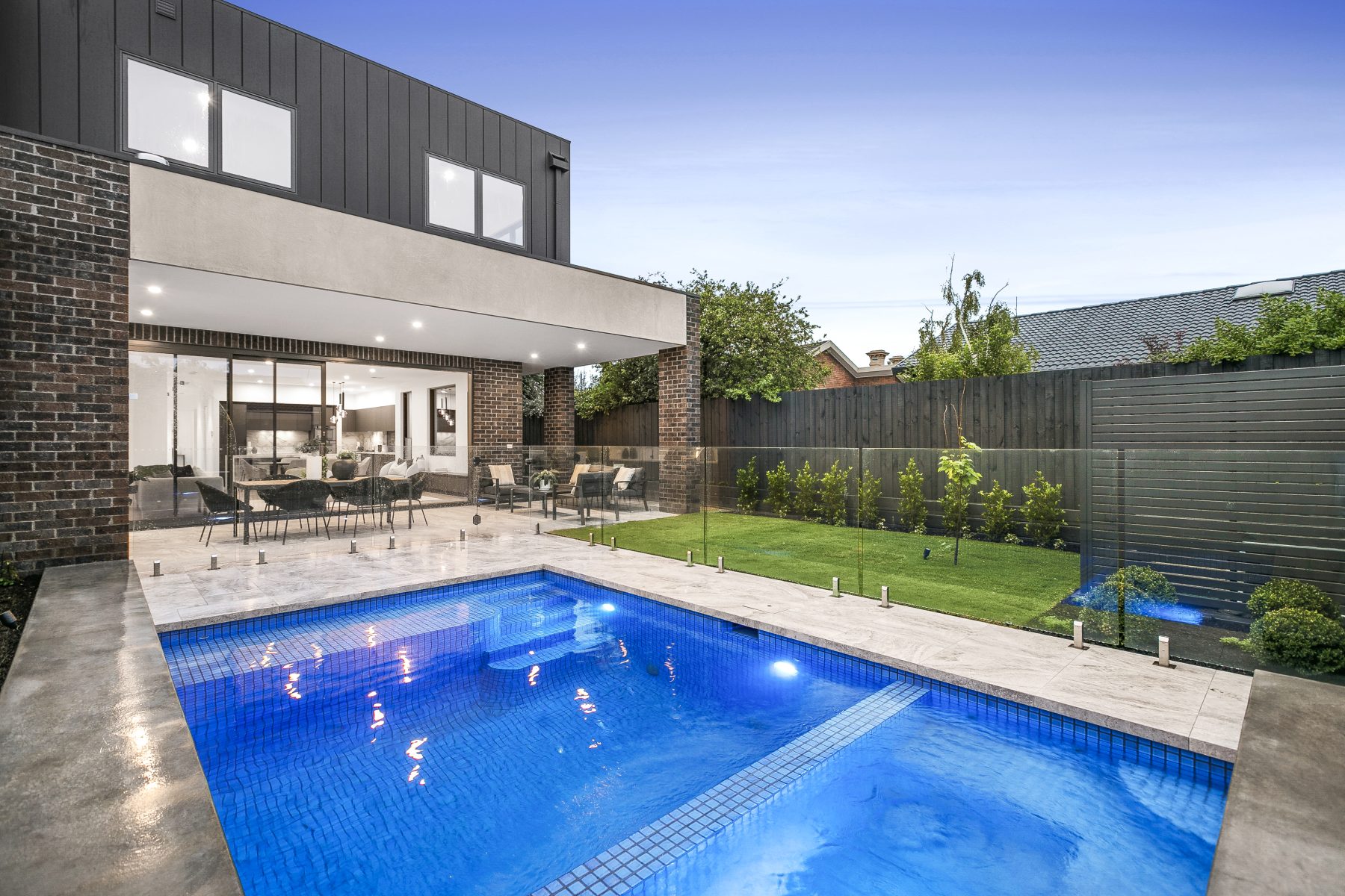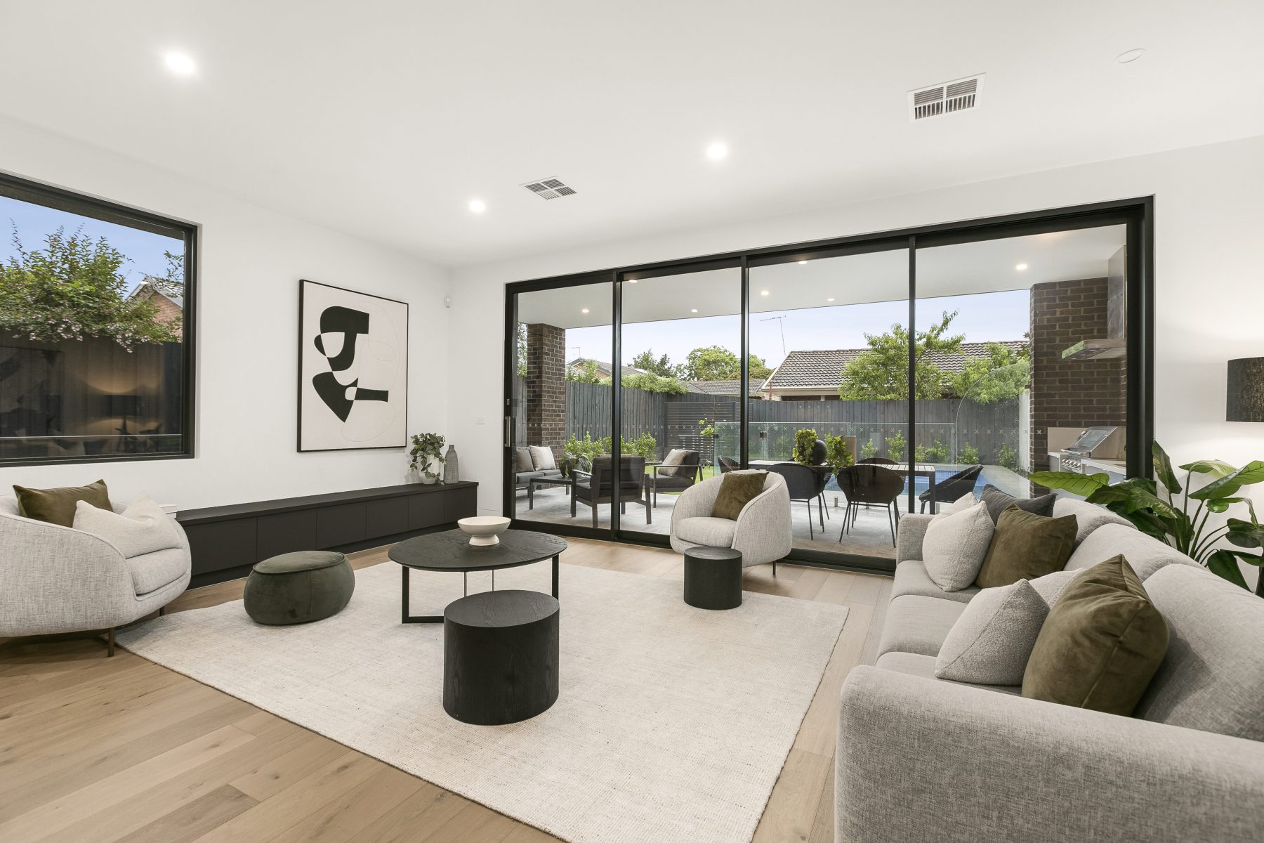 With no expense spared when it comes to the construction and luxurious detail that has been put into this thoughtful residence, and offering incredible space and a serene position in one of Surrey Hills’ most sought-after tree-lined streets. This home will leave a lasting impression as you journey from outside to in, with an absolutely captivating façade utilising high end long bricks, to internals which showcase fittings and fixtures of the highest quality. The wonderful formal lounge lets in superb light from the north thanks to an immense feature window, with this bright room perfect for reading, relaxing, and everything in between. You have more space than you’ll know what to do with in the expansive central family and dining zones, with an Infinity Calacatta stone kitchen incorporated into this space promising Franke sinks, soft-close storage, V-Zug appliances (incl. combi oven and induction cooking), and a full butler’s kitchen with added cooktop. Opening out from the central living zone is the magnificent alfresco area which includes a 5-burner BBQ terrace with bar fridge and solar-heated swimming pool and gas heated spa. Upstairs is highlighted by 3 more bedrooms including the spacious northern master bedroom which features a balcony, large walk-in robe, study, and awe-inspiring double rain shower ensuite. The 2 other upstairs bedrooms have ensuites, with this top floor further boasting a large living room and dedicated study area. The versatile lower ground level features a sizeable entertainment/theatre room, with the space enjoying a kitchenette/bar with Vintec wine fridge and full bathroom. This space could easily be converted into a 5th bedroom and also neighbours a handy office/ home gym. Other home extras include a downstairs guest bedroom with ensuite, downstairs powder room, beautiful Vanilla prestige oak flooring, 100% wool Applecross carpet, lift access to all levels (850mm x 2000mm wide), ducted refrigerated heating and cooling, additional reverse cycle cooling, gas fireplace, secure Bosch alarm, secure intercom, solar power, and a huge 4 car garage.